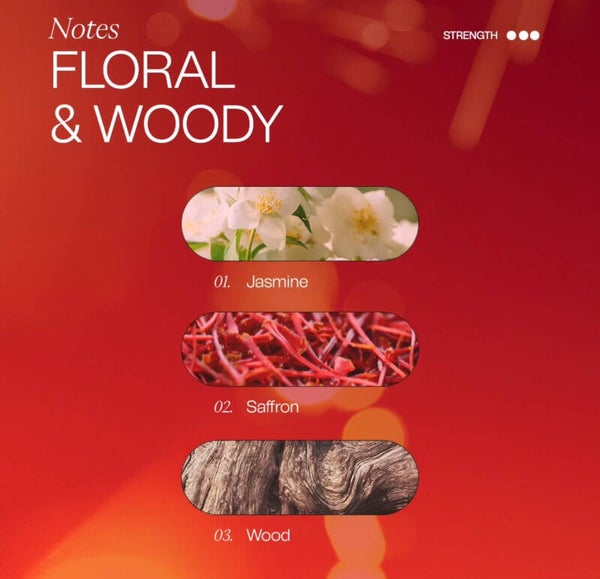Het is een verslavende, heldere en intense geur, met amber-, houtachtige en bloemige noten die een sensueel en elegant aroma verspreiden dat intenser wordt naarmate de minuten verstrijken.